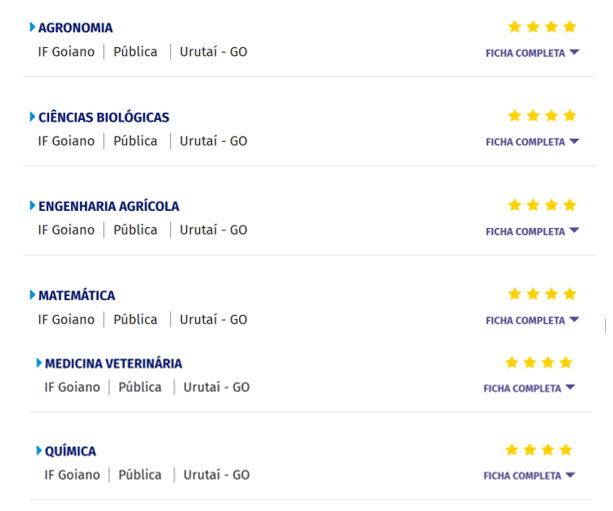 O Instituto Federal Goiano – Campus Urutaí obteve 4 estrelas em seus cursos avaliados no Guia da Faculdade