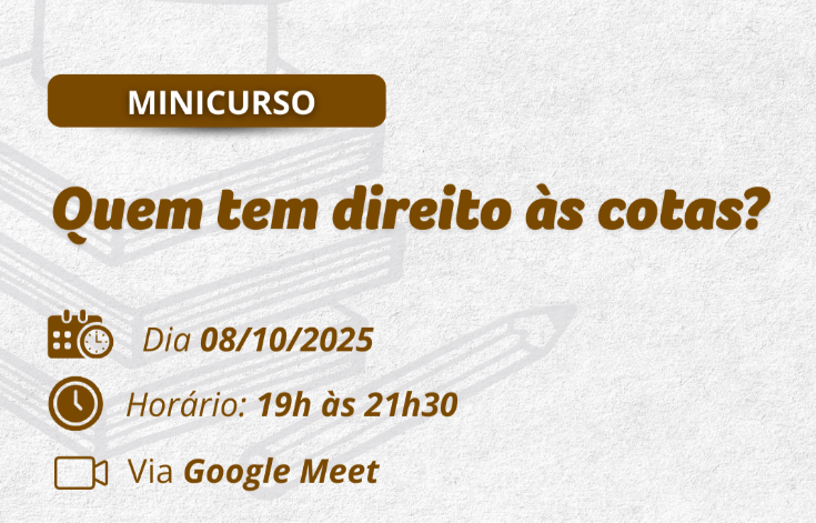 "Quem tem direito às cotas?" será realizado no 8 de outubro, de forma remota, das 19 às 21 horas. Inscrições estão abertas.