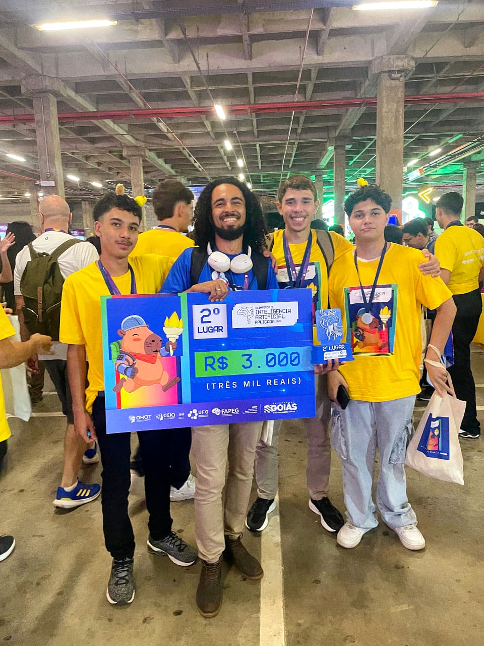 Os estudantes Bruno Silva Reis (1º ano), Moizes de Jesus Sousa (2º ano) e João Vitor Schönberger Gonçalves (3º ano), do Curso Técnico em Informática Integrado ao Ensino Médio do IF Goiano – Campus Cristalina, conquistaram o 2º lugar na Olimpíada de Inteligência Artificial Aplicada (OIAA), promovida pelo Centro de Excelência em Inteligência Artificial (CEIA) e pela Secretaria de Estado de Ciência, Tecnologia e Inovação (SECTI). A equipe, nomeada Cristal Neural, foi orientada pelo professor Angel Rodrigues Ferreira.